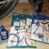 まずボディとチェーンの掃除をして、それからギアチェンジが不調でしたので、リア側のシフトワイヤーを調整しました。久しぶりでしたのでやり方を忘れていましたが、ギアを一番外側の状態にしてワイヤーのテンションを緩めた状態で、ワイヤーのテンションを張り直ります。ディレーラーの状態とスプロケットにチェーンの掛かっている位置が符合していない場合は、合わせます。フロント側も直したいのですが、一瞬直ってもすぐにおかしくなってしまうので、諦めました。そんなに重いギアで走らないので、フロントは軽い方に固定でも大して不便はありません。