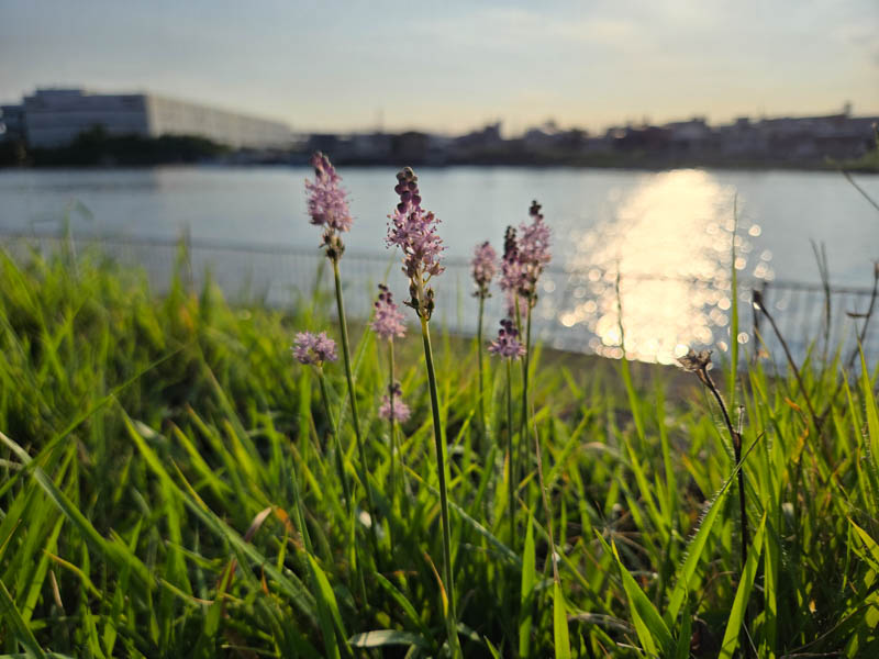 夕暮れの雰囲気を感じながら川沿いを上っていきます。秋分の日を越えて、だいぶ日も短くなってきましたね。道中には彼岸花やキバナコスモスなど季節の花も咲いていて、目を楽しませてくれました。風は涼しくなりましたが、日が射しているとまだまだ暑さを感じますね。