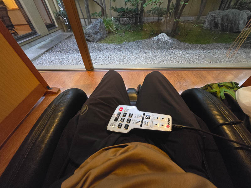 湯上がり後はマッサージチェアを堪能します。何と無料でした。それからお茶で一服したらこちらを後にしました。