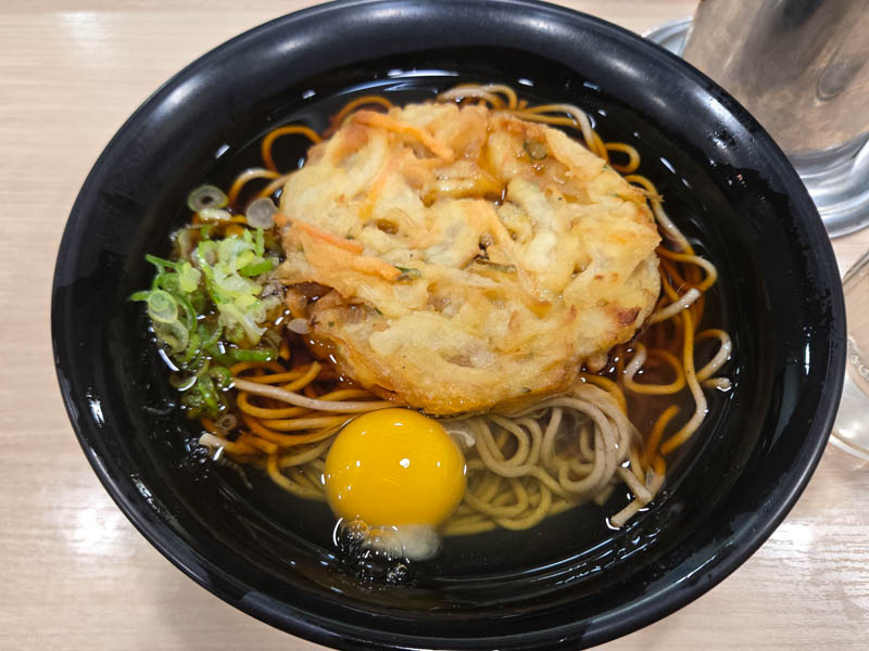 19時すぎ、特急かいじに乗って立川まで向かいます。平日なので休日と比べてだいぶ空いていますね。ポテロングとコーラで小腹を満たします。立川駅に着いたら、駅のホームにある清流そばにて、掻き揚げ天たま蕎麦をいただきました。立ち食い蕎麦はかなり久しぶりです。食後は南武線で川崎へ向かって、今回の旅は終了です。