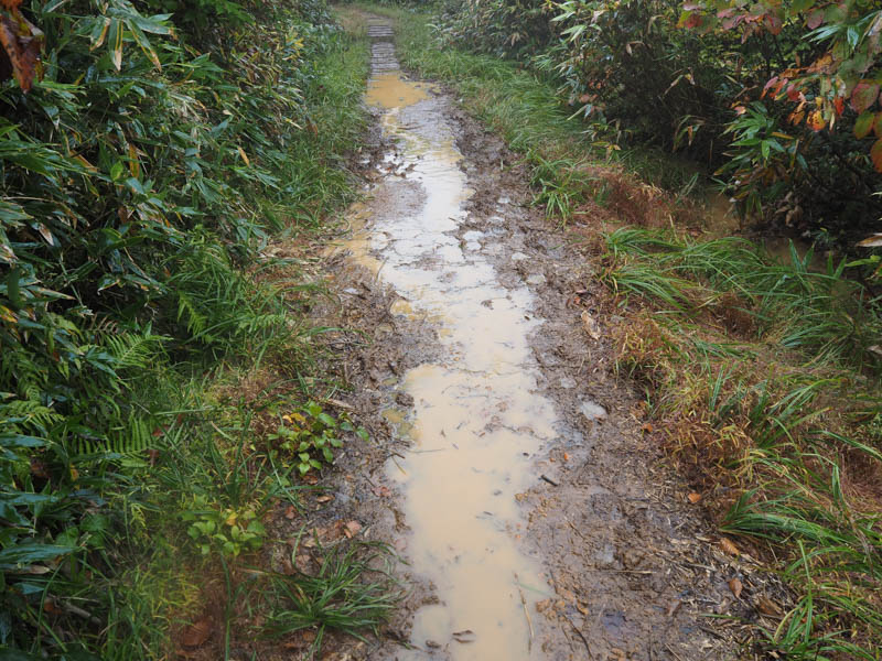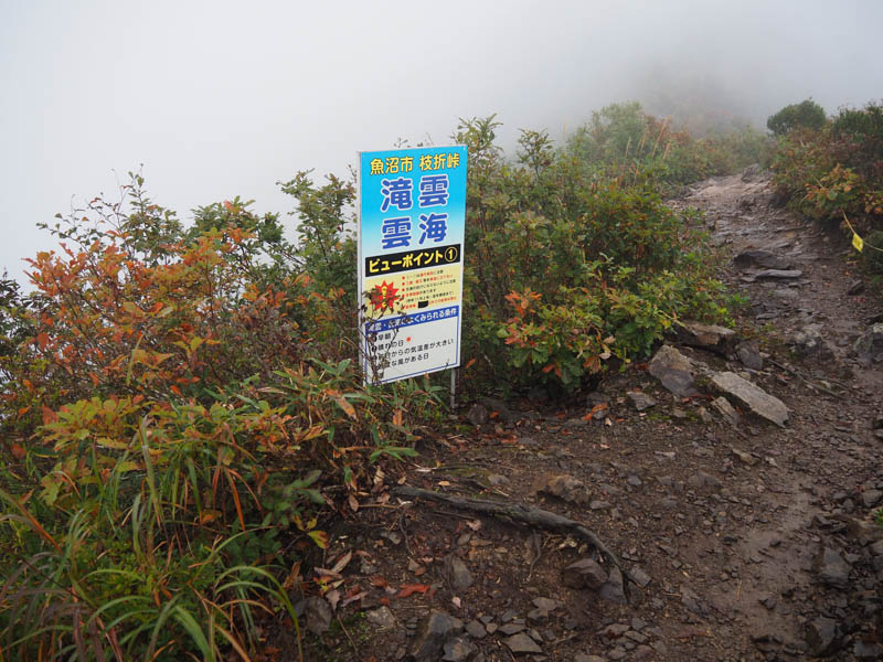 しばらく緩やかな登りや平坦な道を進みます。この辺りは滝雲のビュースポットが2箇所あって登山者以外も訪れますので基本的に歩きやすいです。生憎の天気なので滝雲は見られませんが、撮影目的の人がいなくて通りやすかったのはプラスですかね。