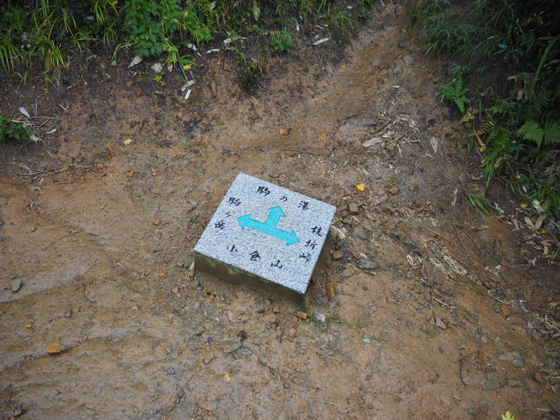 登山開始から2時間ほどで小倉山に着きました。登山道の途中にあるピークといった感じであまり山頂感はありません。山名標の石板の写真だけ撮ったら先へ進みます。