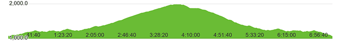 道は全体的に粘土質で滑りやすく、泥濘も多いので、雨や雨上がりの日は歩きにくいと思います。ただ勾配という点では平坦な部分が多くて歩きやすいです。時々急坂もありますが短い距離です。アップダウンもありますが、こちらもそこまで長い距離はありません。獲得標高1,300メートルで8時間コースですから、どちらかといえば水平移動の割合が高めのコースとなります。