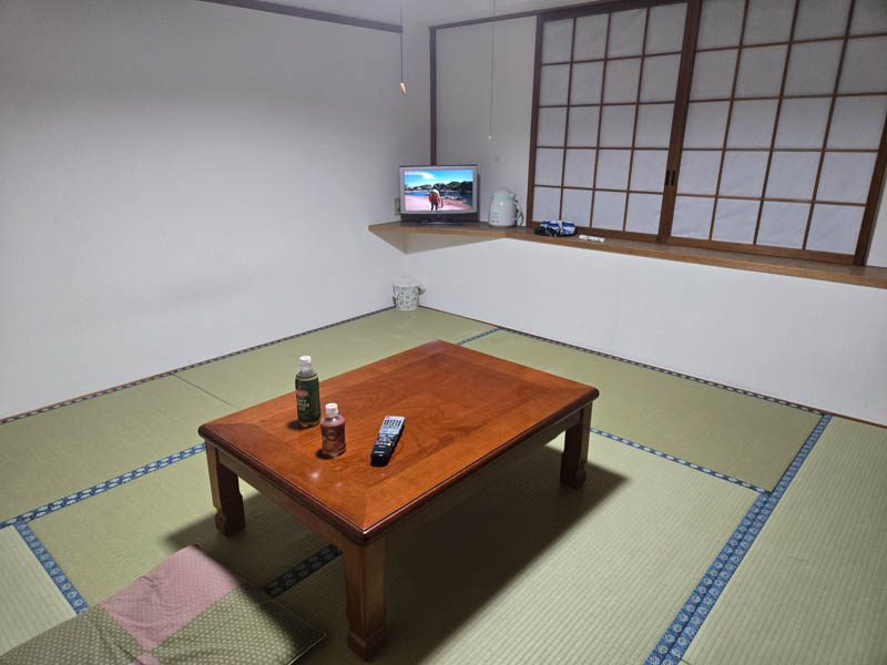 宿泊先はペンションデュークです。明日の天候不良を受けて自分以外の予約客は全員キャンセルとのことで、貸切状態となりました。ドタバタと予約したので勘違いしていましたが、素泊まりかと思っていたら二食付きでした。浦佐駅で買ったご飯は翌日のお昼に回します。