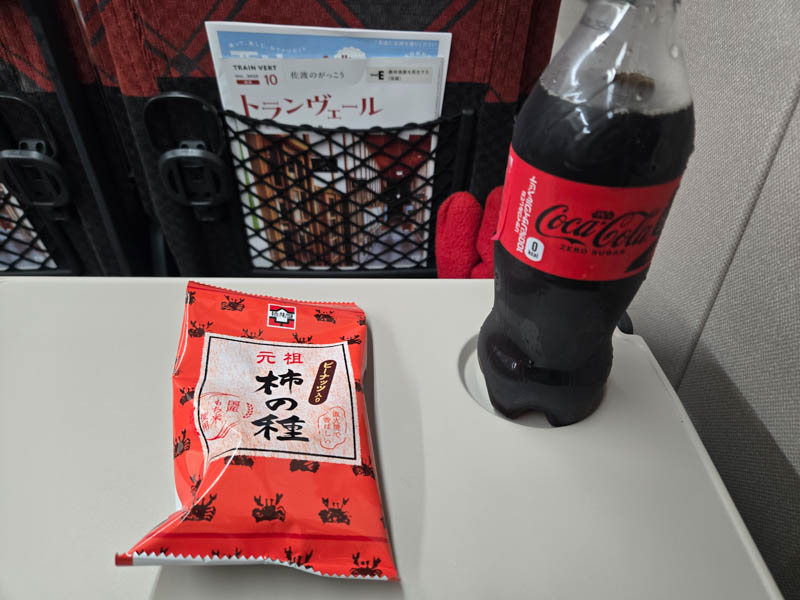 18時ごろ、上越新幹線ときに乗って、一路東京へ向かいます。車内では、駅の売店で買った元祖柿の種をボリボリ食べていました。柿の種というと亀田製菓が有名ですが、元祖は浪花屋製菓だそうです。これで今回の旅はお終いです。