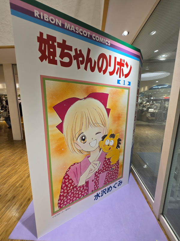 さっそく店頭に姫ちゃんのリボンのパネル展示があって気分が上がります。名場面詰め合わせなコマが背景に並んでいますね。