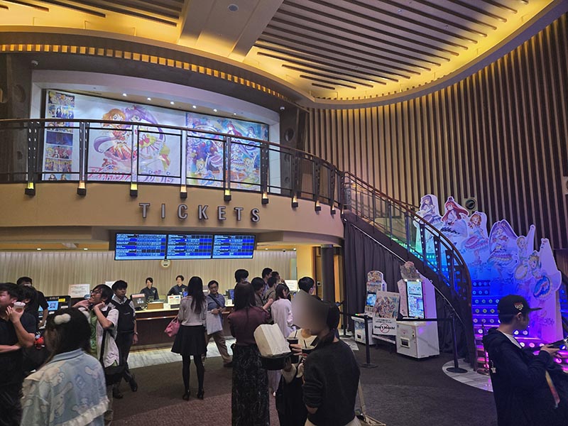 ロビーの引きの写真です。階段で上がった2階部分にも映画のキービジュアル等が掲出されています。バルト9はこのお祭り感が楽しいです。