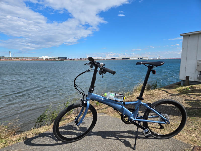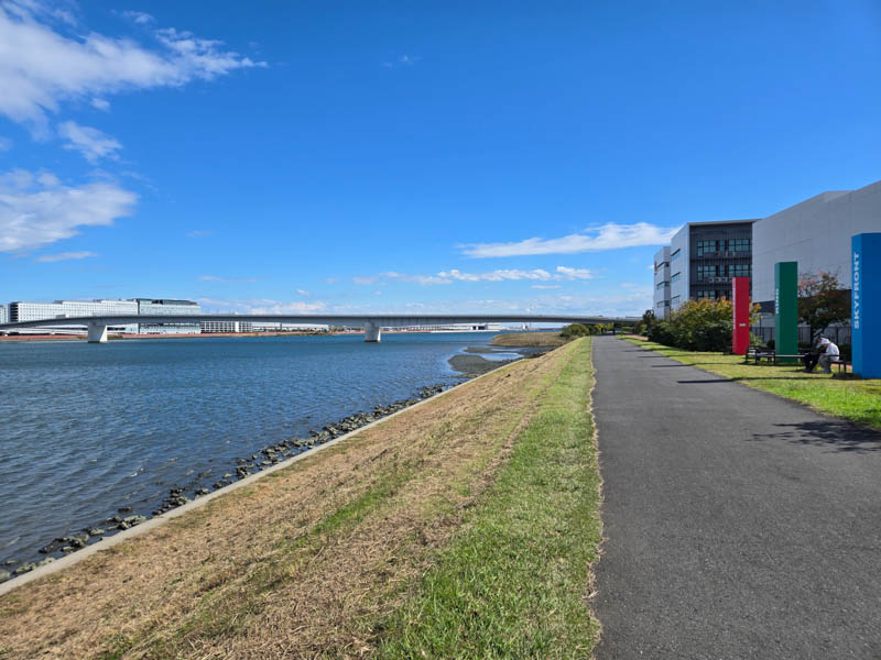 2025年11月03日、良い秋晴れなので折り畳み自転車で近所を走ってきました。まずは第一京浜を走って多摩川まで向かいます。その後は多摩川に沿って河口まで走ります。青空が広がる気持ちの良い天気で、暑くもなく寒くもなく、この季節ならではの適温です。