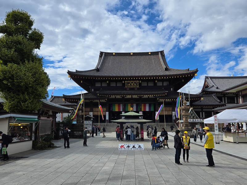 それから川崎大師を参拝します。時期柄七五三の参拝客が多かったです。本堂でのお参りを終えたら、北の湖像や釈尊像などを見て回ります。そして露店が出ていたのでたこ焼きを買ってお昼ごはんとしました。食後は再び境内を回り、菊花展で菊を愛でました。川崎に住んでいますが、川崎大師を訪れる機会はなかなかなく、今回で2、3回目かと思います。雲が増えて陰る時間帯も増えましたが、思ったほど崩れることはなく、再び晴れてきました。