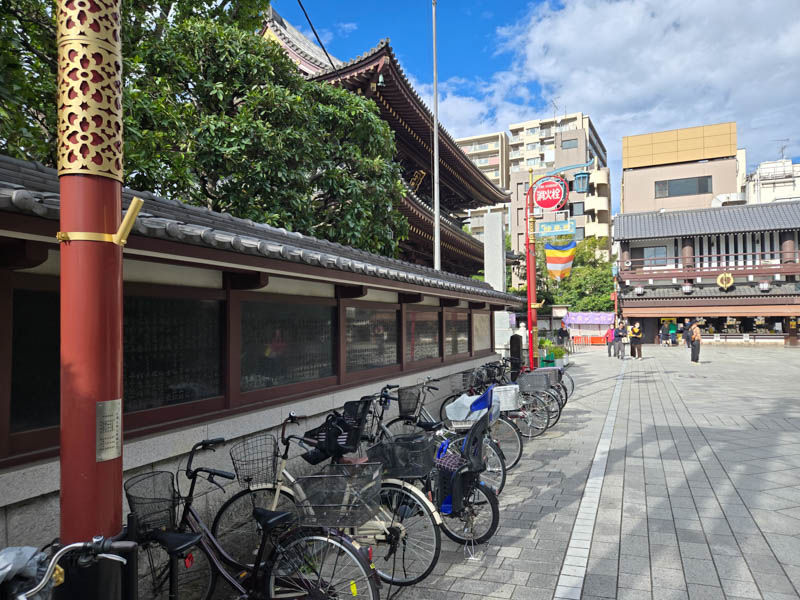 国道409号線を走って向かった先は川崎大師です。大山門の横に駐輪スペースがありますので、そこに駐輪します。地球ロックできるオブジェクトは少ないです。