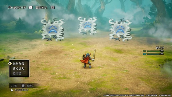 ローラ姫を救出したらメルキドへ向かいます。そのままマップに沿って進もうとしたら、迷いの森という新ダンジョンに迷い込みました。ここでダークドリーマー戦となります。単体かと思ったら3体で出現し、さらに仲間まで呼びます。見た目やその行動パターンも相まって、DQ3HD2Dのよみのもんばんを思い出しますが、今回は最大でFまでしか呼びません。というわけで、単体攻撃で弱点をつけるしんくう斬りで押し切りました。