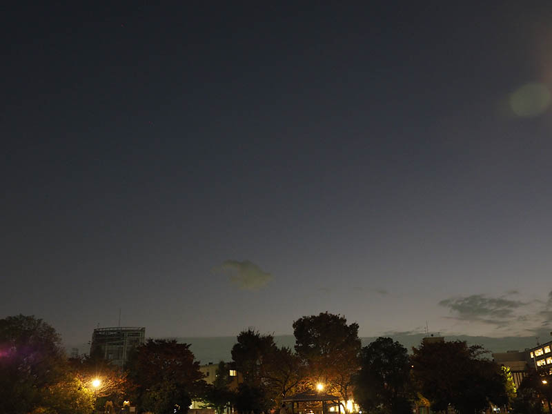 というわけで絶好の機会を逃してしまい、以降はどんどん撮影条件が悪くなっていきます。それでも諦めきれず、晴れていた11月07日の夕方に職場を少し抜け出してスマホで狙いますが、西空に雲が出ていたのかスマホでは厳しいのか、さっぱりでした。11月10日も夕方に外へ出られる用事があったので狙いましたが、建物が近くて低空が隠れてしまい、失敗です。