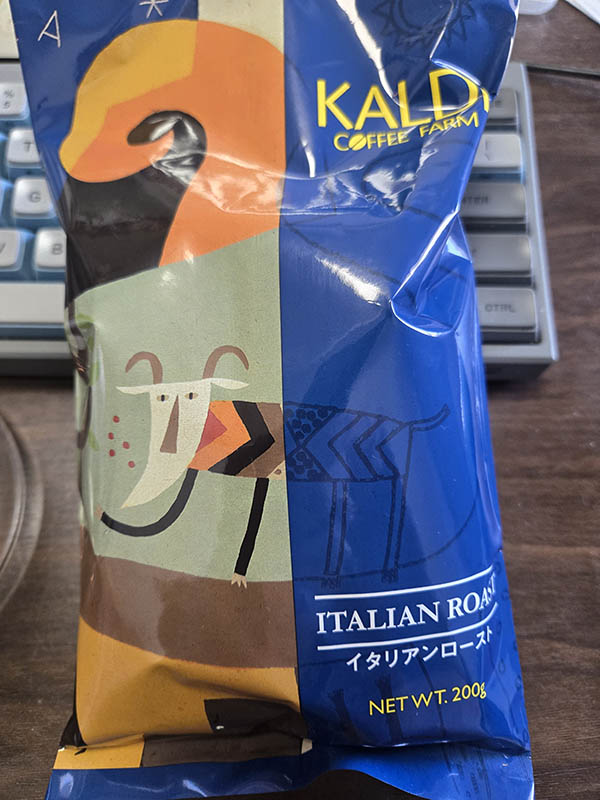 先刻カルディでコーヒー豆ブラジルを購入しましたが、他の豆も試してみたいと思い、イタリアンローストを購入しました。こちらもブラジル産の豆が使われているようです。