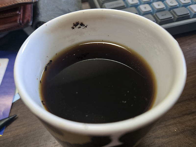 さっそく淹れて飲んでみます。酸味はほとんど感じられず、苦味とコクを感じますね。この味わいなので、粉に対してお湯の量が多いと、薄味になって途端にいまいちになってしまいます。カフェイン量は多いので、朝一に飲むようにしています。