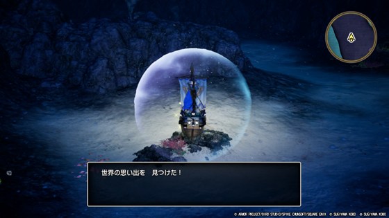 深海でルビスのほこらを見つけたら、そこでアトラスとの戦闘になります。なかなか出てこないなー、と思っていたら、ようやくの登場です。攻撃力は強力ですが物理攻撃だけなので、スクルトの重ね掛けで何とかなりました。それからルビス様にお会いして、ルビスのまもりを授かります。ハーゴンの神殿で必要なアイテムとなります。