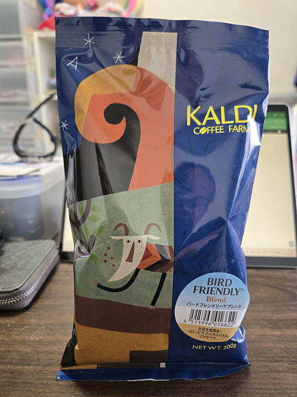 11月に購入したコーヒー豆が尽きてきたので、新しい豆を購入してきました。選んだのは、カルディのバードフレンドリーブレンドです。生産国は、コロンビア、エルサルバドル、グアテマラになります。先月のブラジル産に続いて中南米産です。