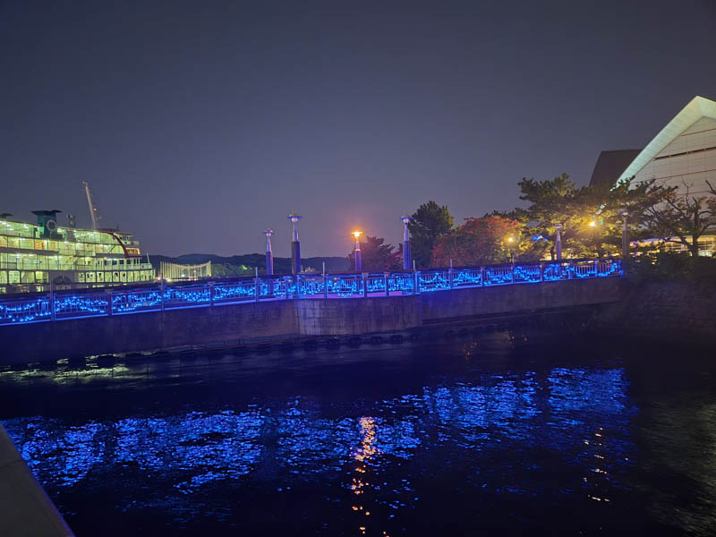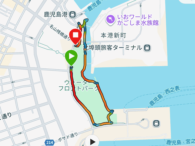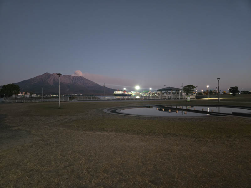 鹿児島へ出かけたので、鹿児島港のウォーターフロントパーク周辺を走ってきました。本当は夕方くらいに走りたかったのですが、観光していたら遅くなってしまい、日没後の薄明の時間帯となりました。