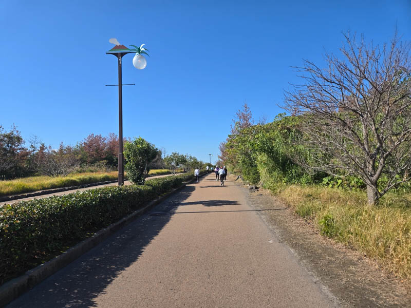 橋を越えるところで少しアップダウンがありますが、海沿いのコースは概ね平坦です。トイレも随所に案内があり、困ることはなさそうでした。自分は今回は寄らずに済ませました。