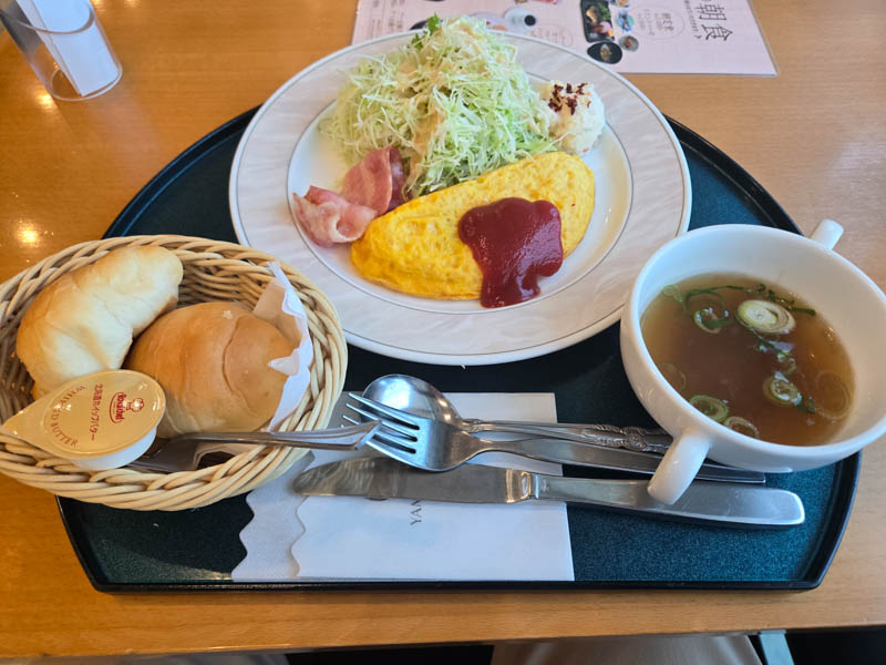 8時すぎ、鹿児島空港に到着しました。展望デッキやSORA STAGEなど空港内を回ります。それから山形屋食堂エアポート店にて朝食をいただきます。注文したのはモーニングセットで、優雅に朝食の時間を楽しみます。