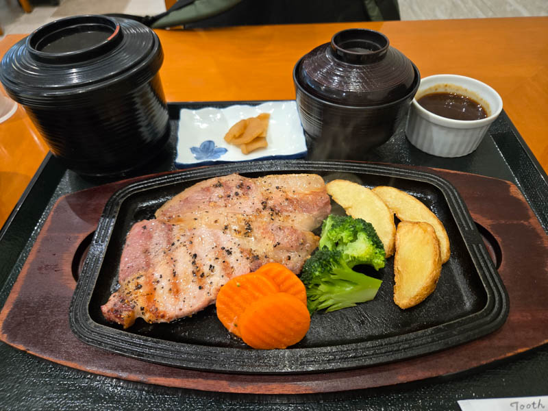19時ごろ、鹿児島空港に到着しました。預入荷物はないので、自動チェックイン機でチェックインを済ませたら、いわさきキッチンさつまにて夕食をいただきます。黒豚のステーキセットと、みそキューリを注文し、お酒は匠の華を注文しました。みそキューリは鰹が入った特製味噌の風味が良いですね。匠の華は度数30度でなかなか飲み応えがありました。