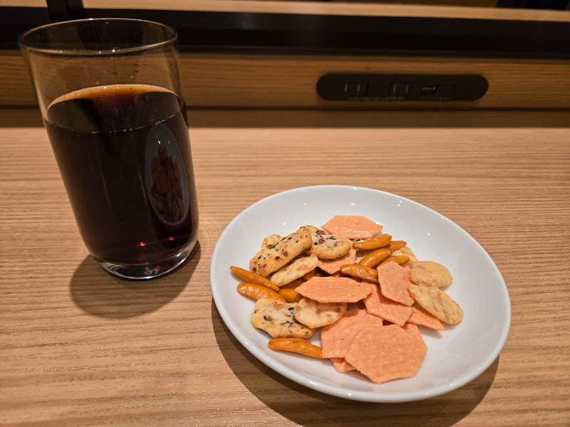 それから保安検査場を通過し、サクララウンジに入ってまったりと過ごします。日曜ですが、最終便近くということもあって特に混んでいません。