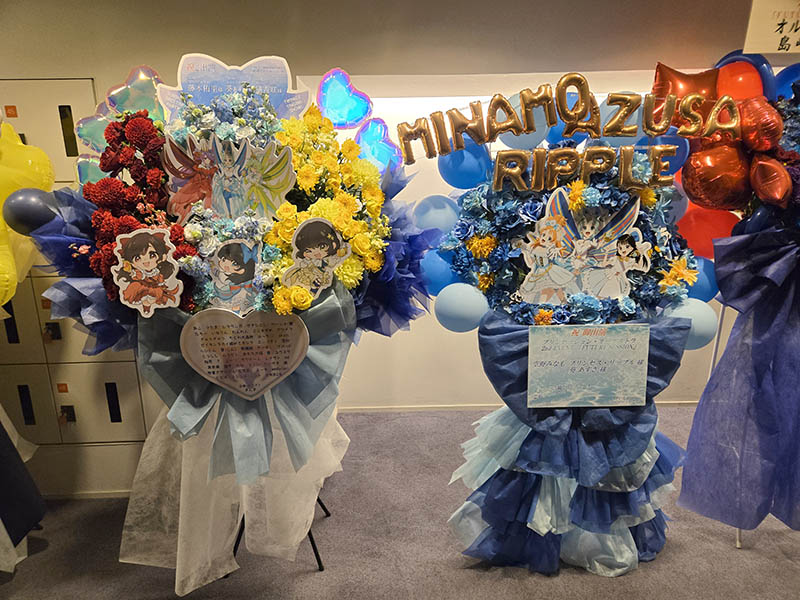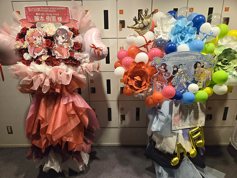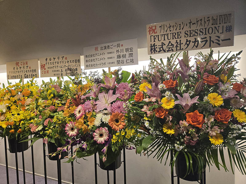 入場してすぐのところに、フラスタが並んでいます。手前が関係者からのフラスタで、奥がファンによるフラスタとなります。