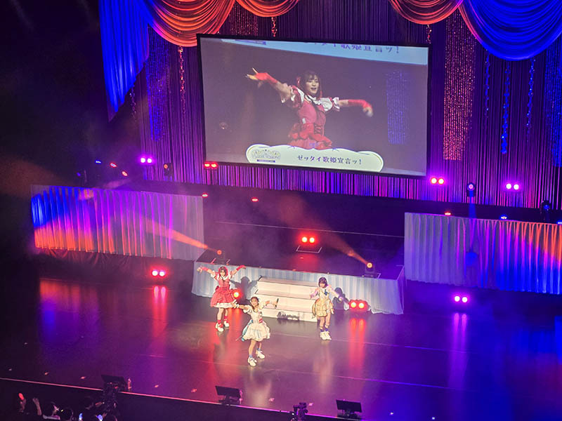 夜公演は、最速先行では落選し次の先行で当選したので、良席はないだろうと覚悟していました。実際ステージに向かって右側正面の3階席でしたが、そこまで距離は感じませんでした。なおこちらの会場は構造上ジャンプが禁止となっており、入場時にチラシでも注意喚起が為されました。「ゼッタイ歌姫宣言ッ!」とか気を付けないとジャンプしちゃいそうです。