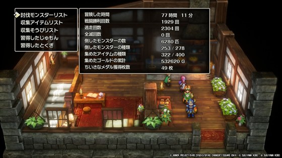 だいぶしゃぶり尽くしてきましたが、あとやるとしたら、そうびやアイテム、討伐モンスターリストのコンプリートですかね。ちいさなメダルとかまだ全然集め切れていないですし、レアアイテム集めなど色々なやり込み要素が、このコンプリートに繋がっていると思います。種ドーピングによるステータス最大化はやりません。