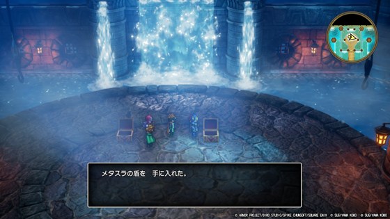 取り逃しアイテムは、鍵付き宝箱を中心とした各町で入手できるアイテムが中心です。一部、店で購入できるもので回収し損ねていたものもありました。ムーンブルグ西のほこらの道具屋とかスルーしちゃっていました。最後のアイテムは、海底宝物庫・南海にあった「メタスラの盾」でした。こちら、そもそも未踏でした。