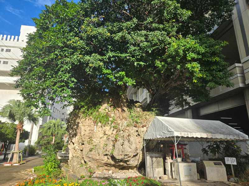 那覇へ戻ってきたら、ぶらぶらと散策します。バスターミナル近くにある中島の大石を見た後は、明治橋を渡って奥武山公園へ向かいます。