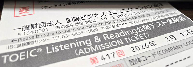 2026年02月15日、第417回TOEIC L&R公開テストを受験してきました。前回の受験は第375回でしたので、随分と間が空いてしましました。結局2025年は一度も受験していなかったですね。