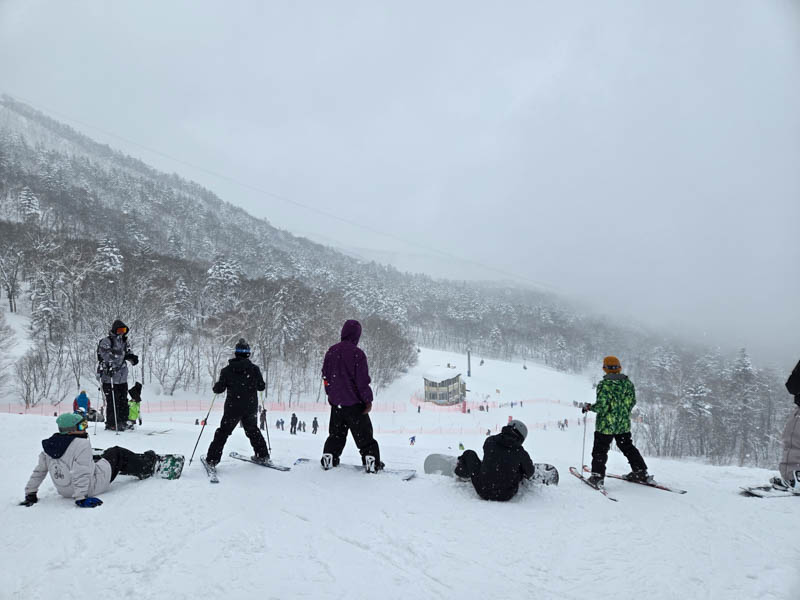 その後はスキーセンターのレストランで昼食をとろうと思いましたが、お昼時で混んでいたので、先にサミットエクスプレスで山頂に向かいました。サミットエクスプレスで登っていると右手に国内屈指の難度で知られる北かべが見えます。見てるだけでも怖くなる斜度に加えてコース幅の狭さ、生涯滑れる気がしません。