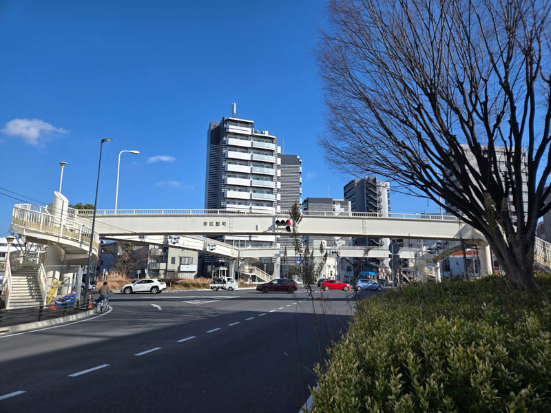 国道1号線に出合ったら、多摩川を目指して東京方面へ走ります。交通量も多いので歩道を走っていたのですが、歩行者用の横断歩道がほとんどなく、基本的に陸橋を渡る形式でしたので、自転車を担いで渡る羽目になって大変でした。しばらく走って東芝小向工場が見えてきたら御幸公園はすぐ隣です。