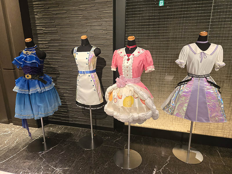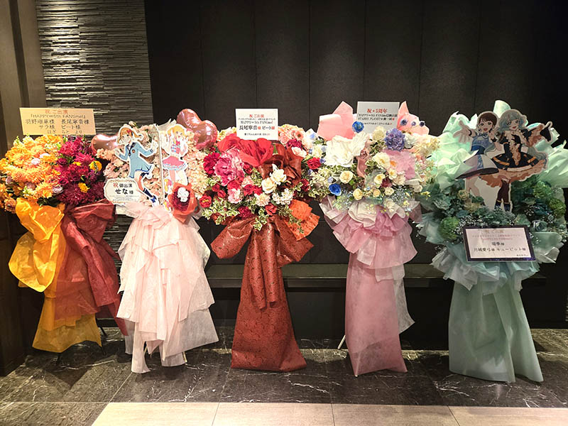 受付にフラスタが展示されています。入場待機列の折り返しのところで撮っておくのが良いでしょう。終演後にも撮影はできます。ヨルーイン公演の終演時には、チケットもぎりが行われていた場所にて、衣装展示も行われていました。