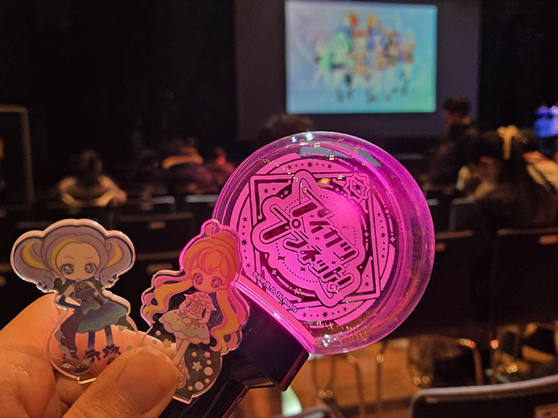 昼公演は着席指定で親子席があり、夜公演はそれらがないので、昼夜でイベントの形式が違うのかなと思っていたのですが、構成は同じでした。出演はアイカツプラネットのキャスト6名と、わかさんとせなさんです。両名は、梨央さんとエイミーさんが出演されないので、ライブパートではその代役を務め、その他のパートでは進行を担当されていました。