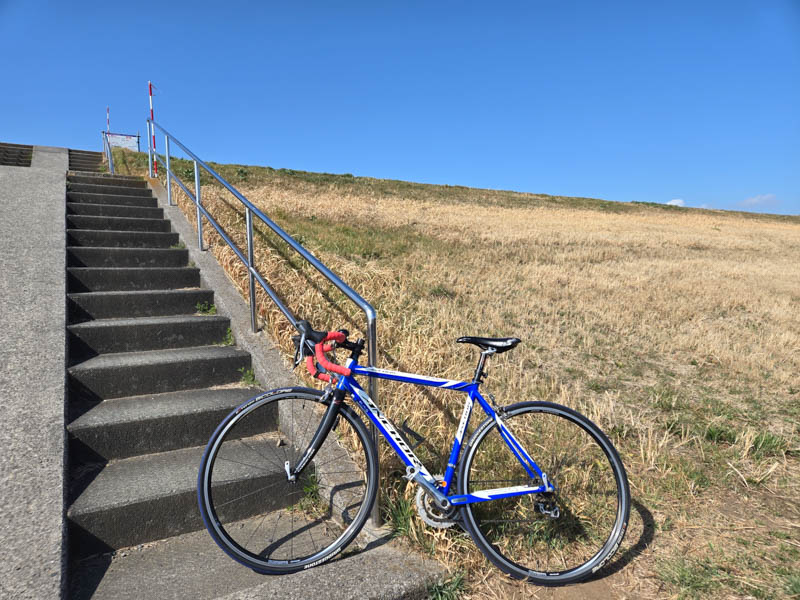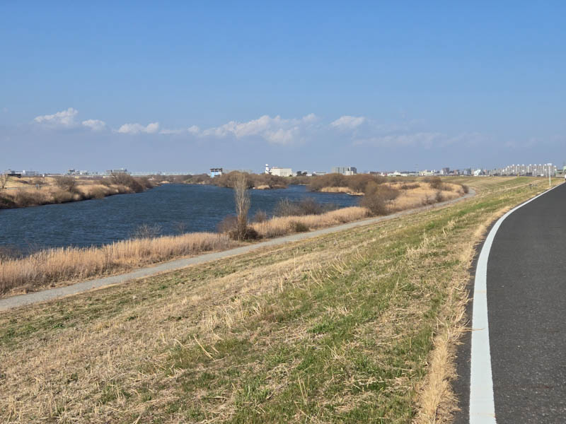 2026年02月23日、江戸川CRを走って松戸の河津桜をお花見してきました。さっそく江戸川CRに入って、南へ走ります。この日は青空の見える好天ですが、南西の風が強いのでなかなかの修行状態です。風が顔に思いきり当たって、目や鼻がしんどかったです。バイザーが恋しい……。