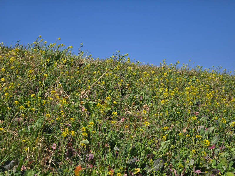 土手には菜の花がまばらに咲き始めています。一面黄色に染まるのは来月中旬以降でしょうか。江戸川CRのベストシーズンは、菜の花シーズンだと思っています。本当に花粉さえなければ最高の時期なんですけどね。