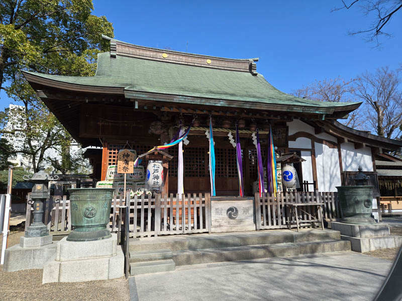河津桜を見終えた後は、松戸神社に寄り道しました。道路沿いからすぐに拝殿まで立ち寄ることができます。水戸光圀公も崇拝した松戸の総鎮守です。