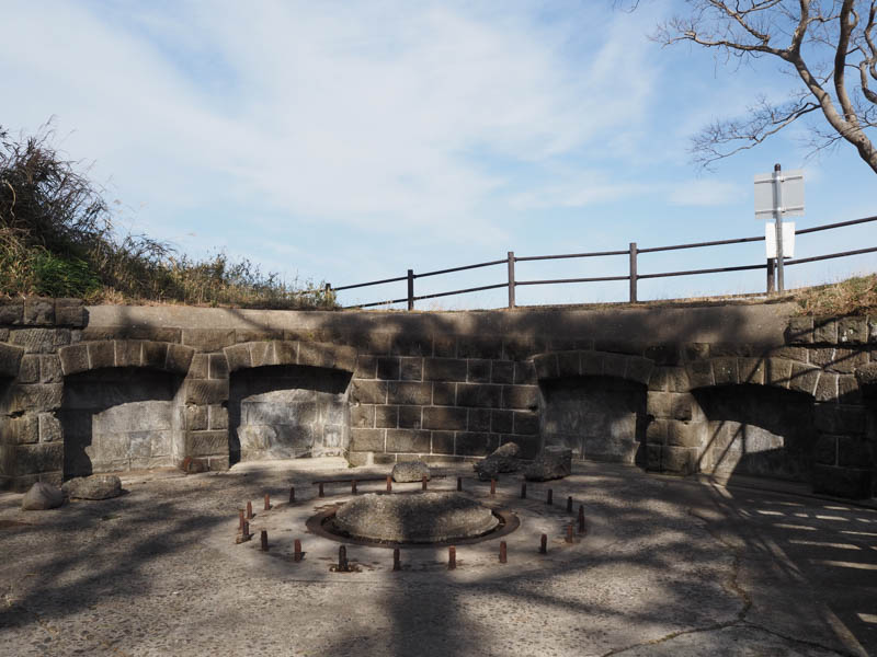 御所ヶ崎には走水低砲台の遺構があります。砲台の設置痕や建造物の内部を見学できます。手を叩くと音がよく反響して楽しいです。南の方を見遣ると、これから向かう観音崎を見渡せます。