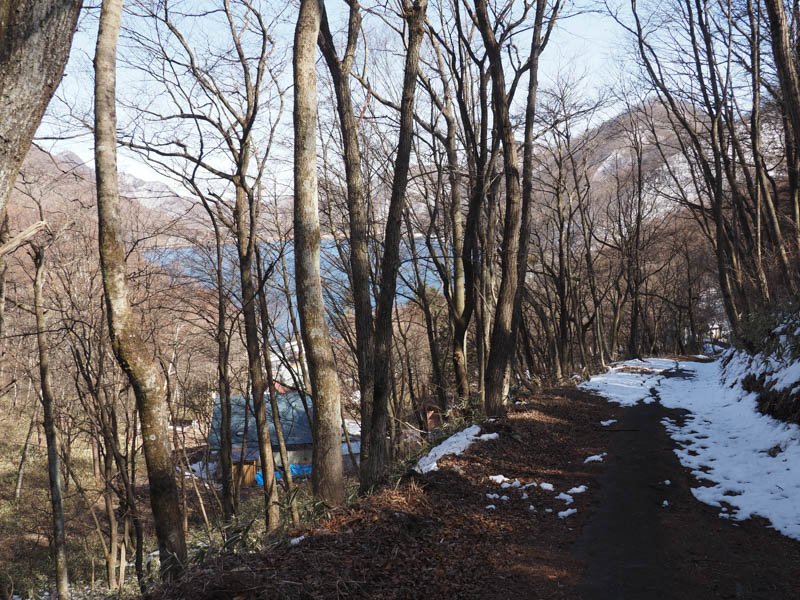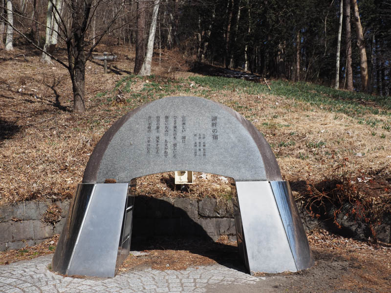 榛名湖に着いたら登山口に向かいます。その道中に湖畔の宿記念公園があるので立ち寄ります。散策を終えたら、榛名湖荘まで進みます。もう少し手前からも登れるのですが、硯岩を見たかったのでこちらの登山口まで足を伸ばしました。意気揚々と歩きつつも実は尿意を催しており、ポケットパークのトイレを当てにしていたのですが、何と冬期閉鎖でした。結局湖畔の宿記念公園まで戻ることになりました。なお先ほど立ち寄った時にも探したのですが、駐車場側に目が行かずに見落としていました。