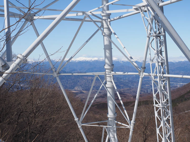 山道を黙々と進んでいくと、杖の神峠との分岐に出合います。マップを見ると直進した少し先が行き止まりになっているので、そこまで向かうことにしました。この先は誰も歩いていないようでトレースが皆無です。ただ先へ進んでも鉄塔があるだけで特に展望もないので引き返します。道自体はまだ続いていましたが地図に載っていませんし、どこへ通じているかも分かりません。作業道にしては整っている感じです。