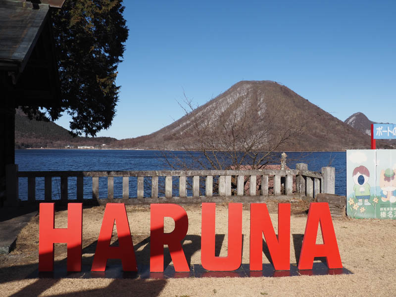 食事を終えてもバスの出発まで1時間近くあるので、湖畔を散策します。御沼龗神社を参拝したり、HARUNAのロゴモニュメントを撮影したり、長野堰を見たりしました。しかし如何せん湖から吹き付ける風が冷たいです。風を凌げる場所はほとんどなくてつらい状況です。今にして思えばせっかく時間があったのだから、竹久夢二のアトリエに立ち寄っておけばよかったです。寒さで頭が回りませんでした。