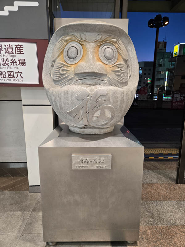16時40分になったらバスに乗って高崎駅まで移動します。駅の中で幸福だるまを見つけつつ、新幹線で東京まで向かいました。