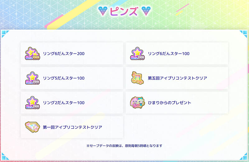 データは以下の通りです。突き詰めようとすると、時間以上にお金が掛かってしまうので、出来る範囲で楽しみました。ピンズはどんなものがあったのかあまり把握していませんが、あまり回収できていない感じですね。
