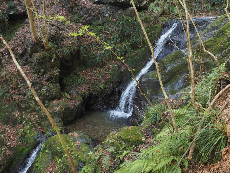 しばらくは普通の樹林帯の中を進んでいきます。勾配もさほどきつくありません。やがて左手に沢が見えてきました。木々越しに滝を望めます。細いですがわりと落差のある滝なので見応えがあります。