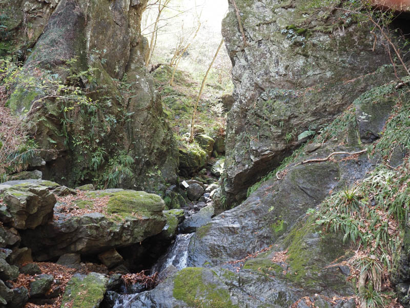ゴルジュ帯は何箇所か登場します。規模は大きくないですが、その分手軽に楽しめます。一般登山道ではあまり出合わない景色なので楽しいです。