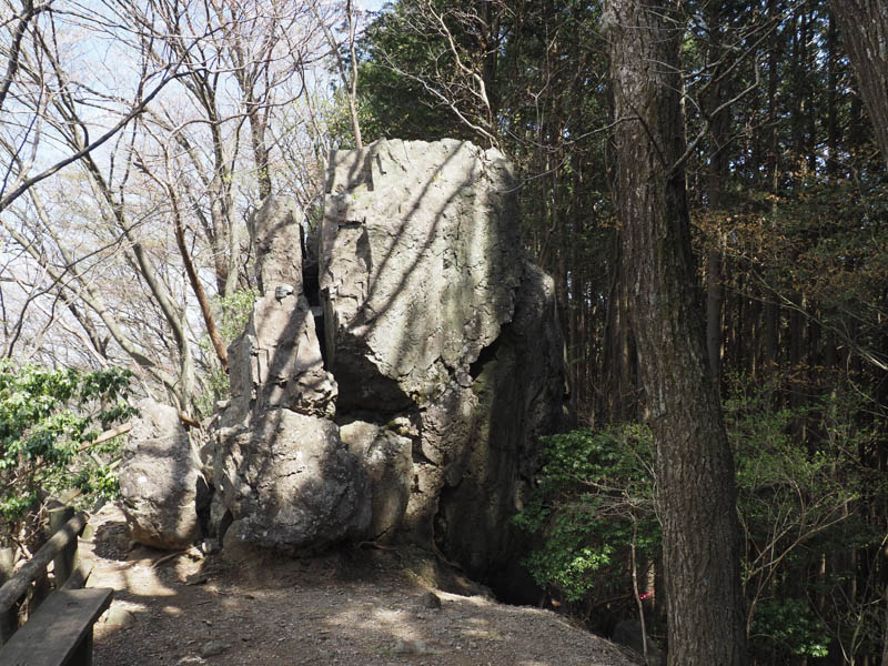 桜を楽しみながら進んでいくと、岩茸石に着きました。案内板に表示があるもののなかなか姿を見せませんでしたが、ようやく登場です。岩茸石自体には特に案内標はないので、地図を見て判断しました。