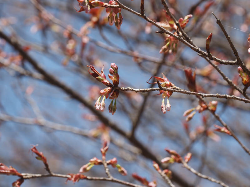 山頂にある桜は残念ながらまだ蕾でした。満開には1週間弱掛かりそうです。まあ、その分少し低い場所にある山桜を楽しめました。