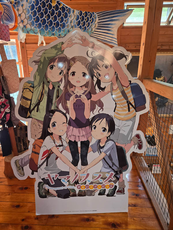 湯上がり後はマッサージチェアを堪能したり、売店で買った秩父ビール紅熊で喉を潤したりしました。ベリー系の風味が爽やかなビールです。また売店にはヤマノススメグッズも置かれていたので、ひなたさんの温泉アクリルキーホルダーを買いました。お菓子も欲しかったので、ふうせん煎餅を購入です。