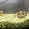 この安定する過程で、白コリ1匹が落ちました。もともともう1匹に比べてあまり動かないなあ、とは思っていましたが、至って健康に見えたのに(><)。こうして住人がバルーンモーリーと白コリの2匹だけになりました。少し寂しいので、ヤマトヌマエビ3匹を加入しました。ところが、1匹は翌日に脱走して姿を消し、週末に干しエビとなって発見されましたT-T)